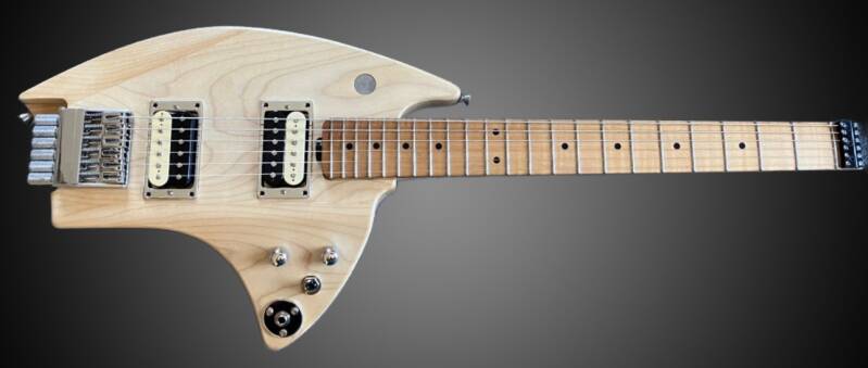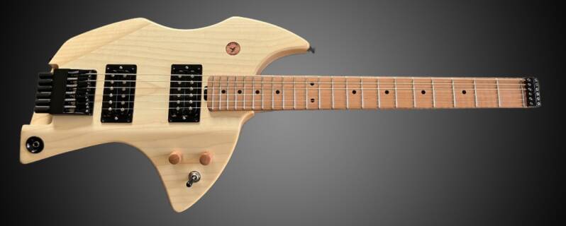 Besonders schöner Maserahorn, Edelstahlbünde und ein fetziges Humbucker-Set machen diese Kolibri aus.