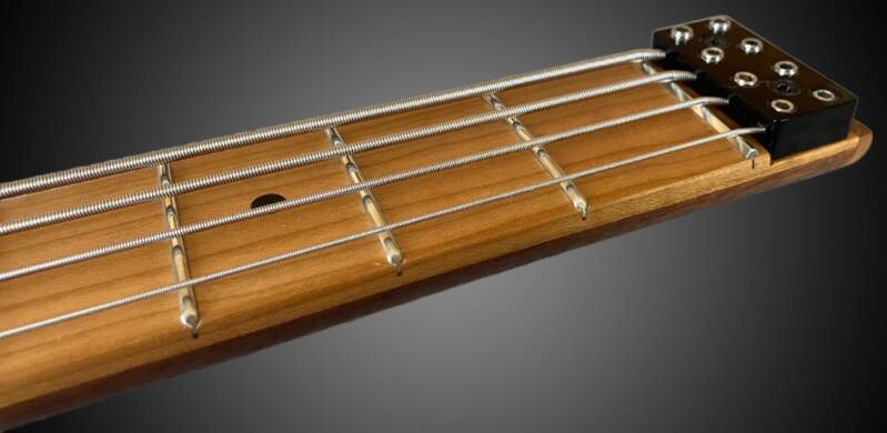 Edles amerikanisches Mahagoni und enge, stehende Jahresringe im Hals sorgen zusammen mit einem Duesenberg Bass-Bucker für einen strammen und knackigen Sound bei sehr nierdriger Saitenlage.